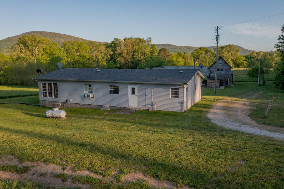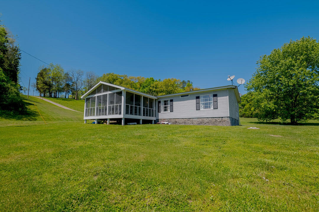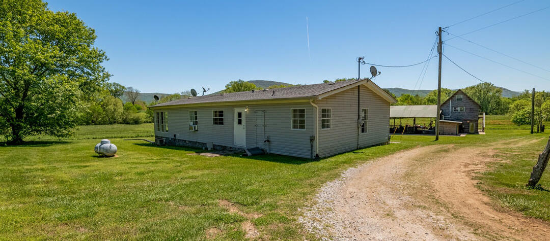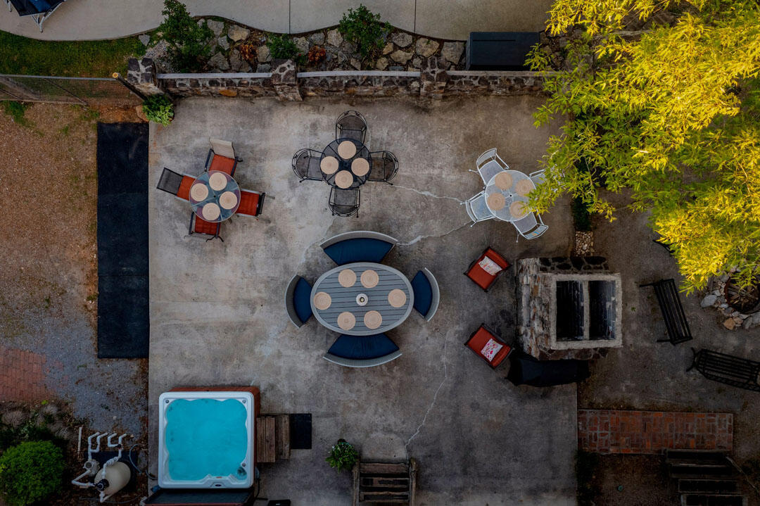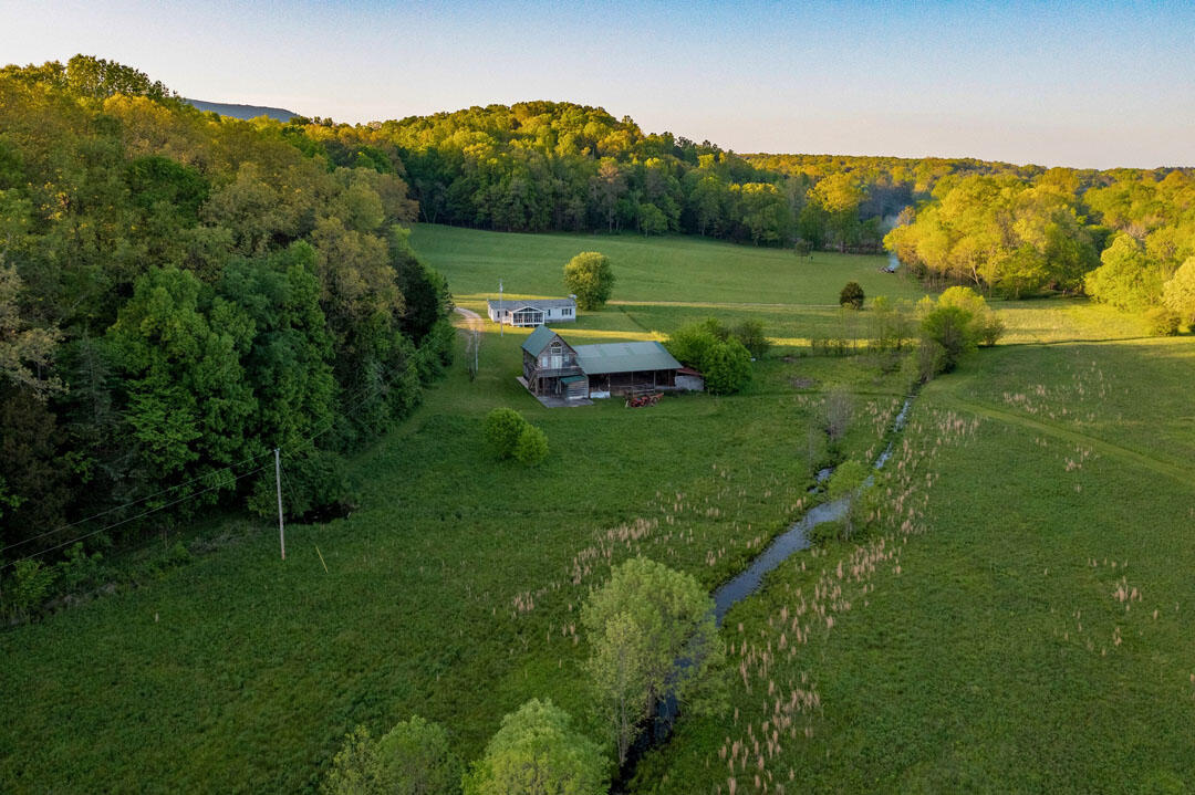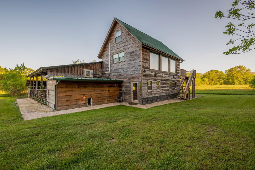 A magnificent 6,000 sq. ft. log cabin nestled in a cove with gorgeous mountain views. Perfect for family reunions and corporate retreats having 2 kitchens and 2 great rooms. Over 2,500 sq. ft. of outdoor living space including a covered front porch with rockers, an enclosed porch with foosball table and sauna, and 3 balcony decks. Enjoy views from the large side deck or visit the hot tub and 36-ft inground pool. Gather around the fire pit and outdoor fireplace in the evenings. The 3-acre front yard has plenty of play space, with a mile-long hiking trail leading through the woods to the 30-foot wide Chickamauga Creek that runs through the property.