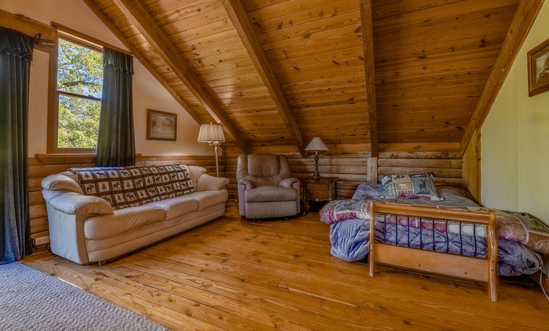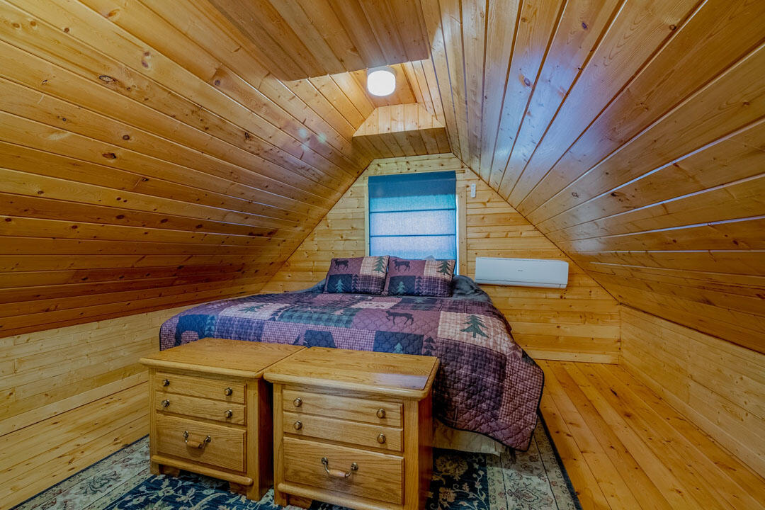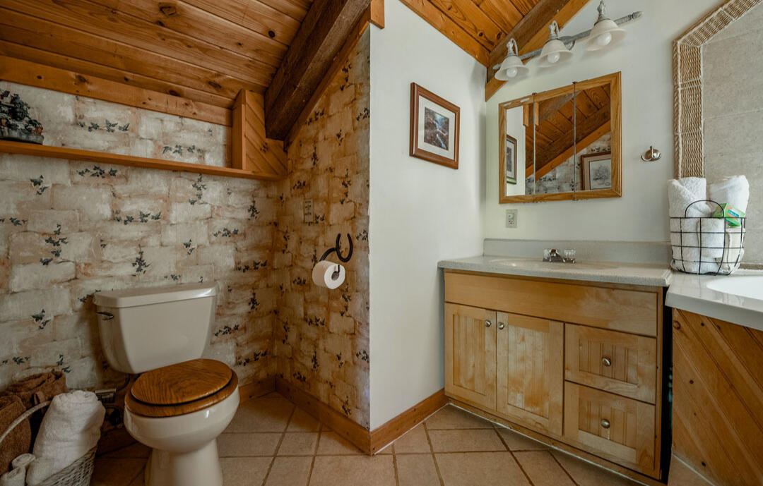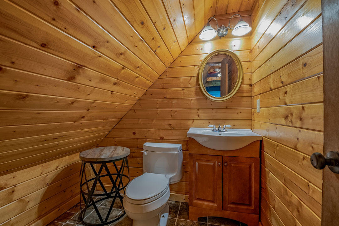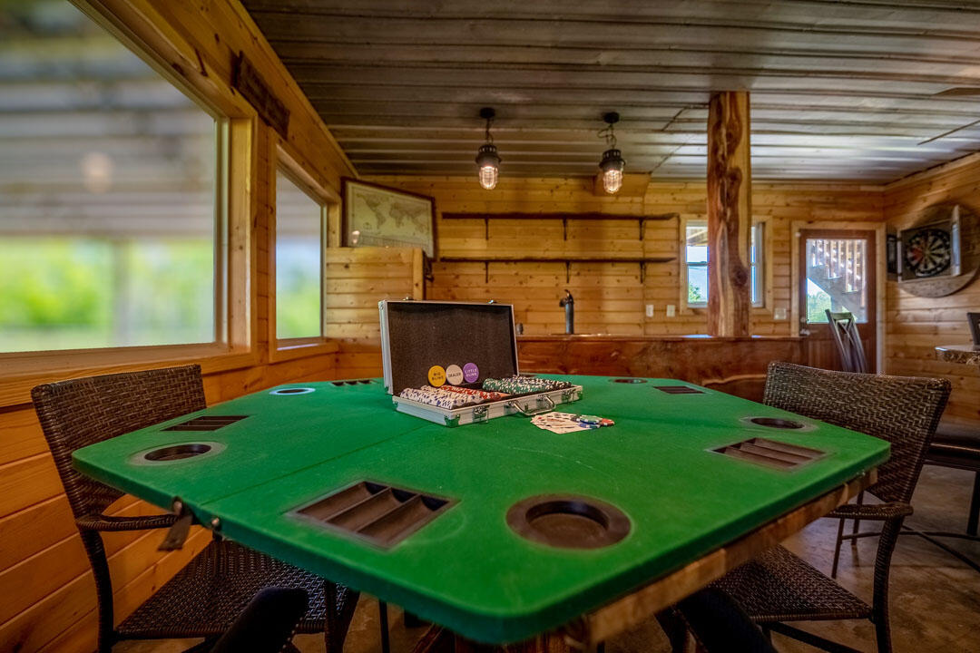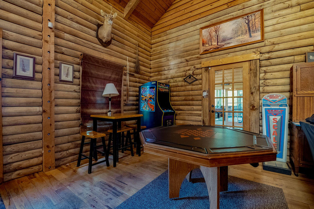 A cozy retreat situated 500 feet from the main lodge with its own driveway access. Includes 2.5 bathrooms, sleeping accommodations for 4 people, and a non-kid game room.