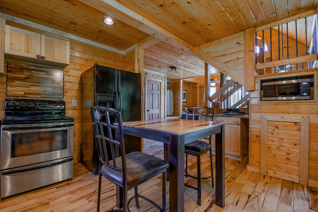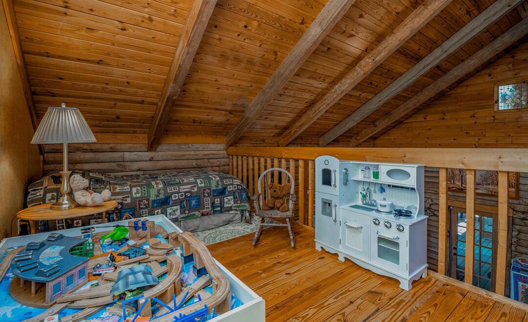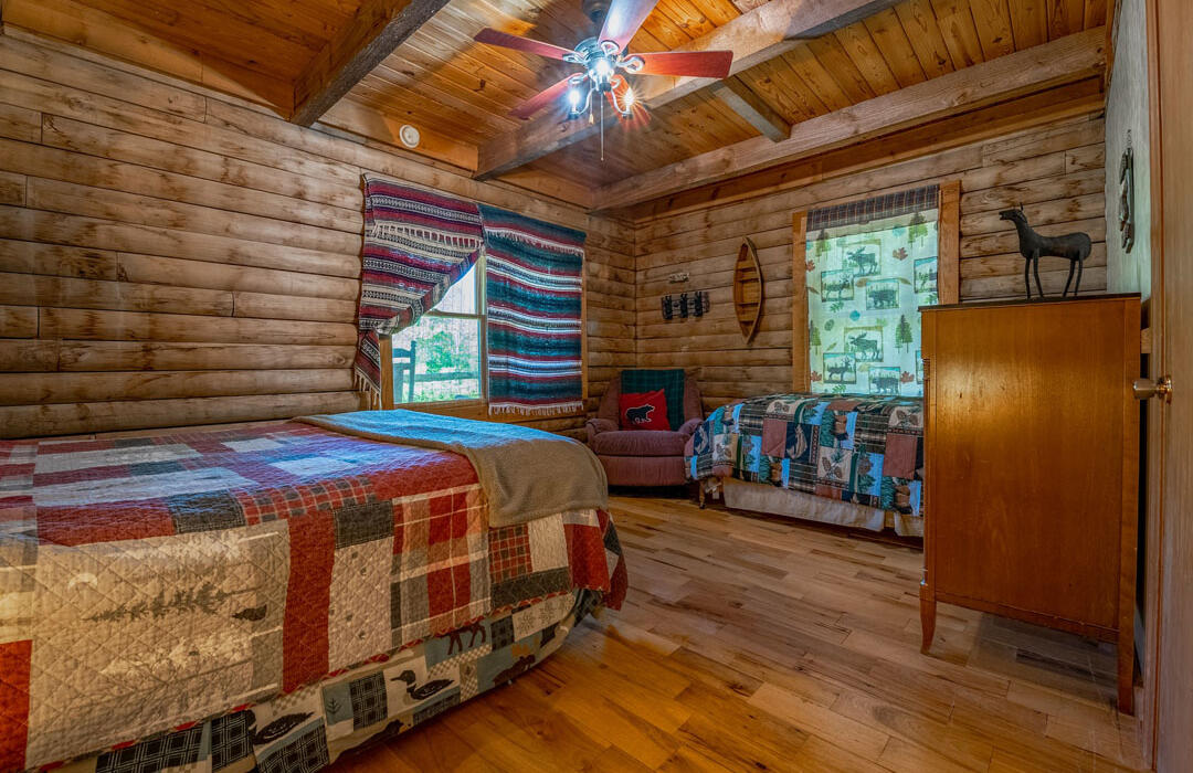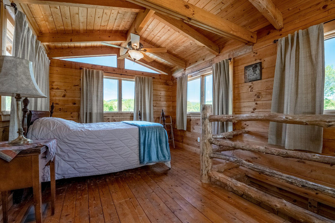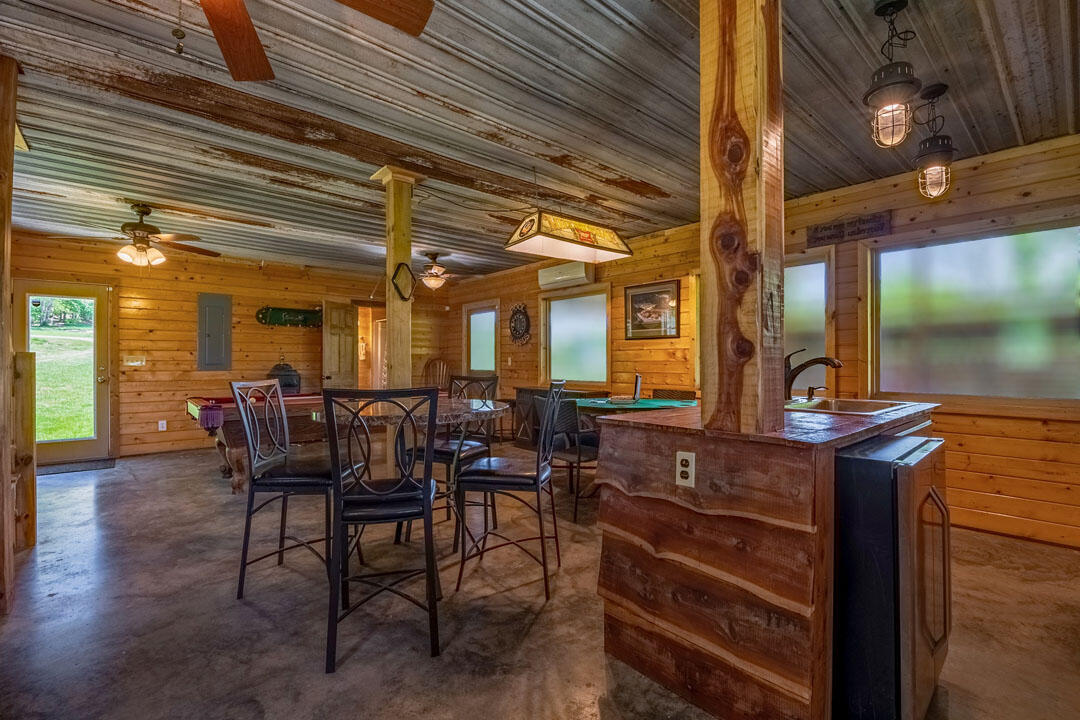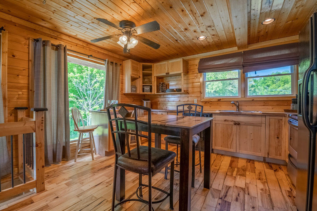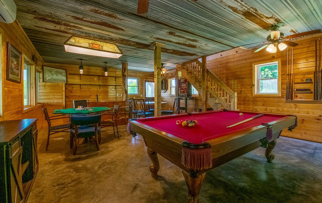 A cozy retreat situated 500 feet from the main lodge with its own driveway access. Includes 2.5 bathrooms, sleeping accommodations for 4 people, and a non-kid game room.