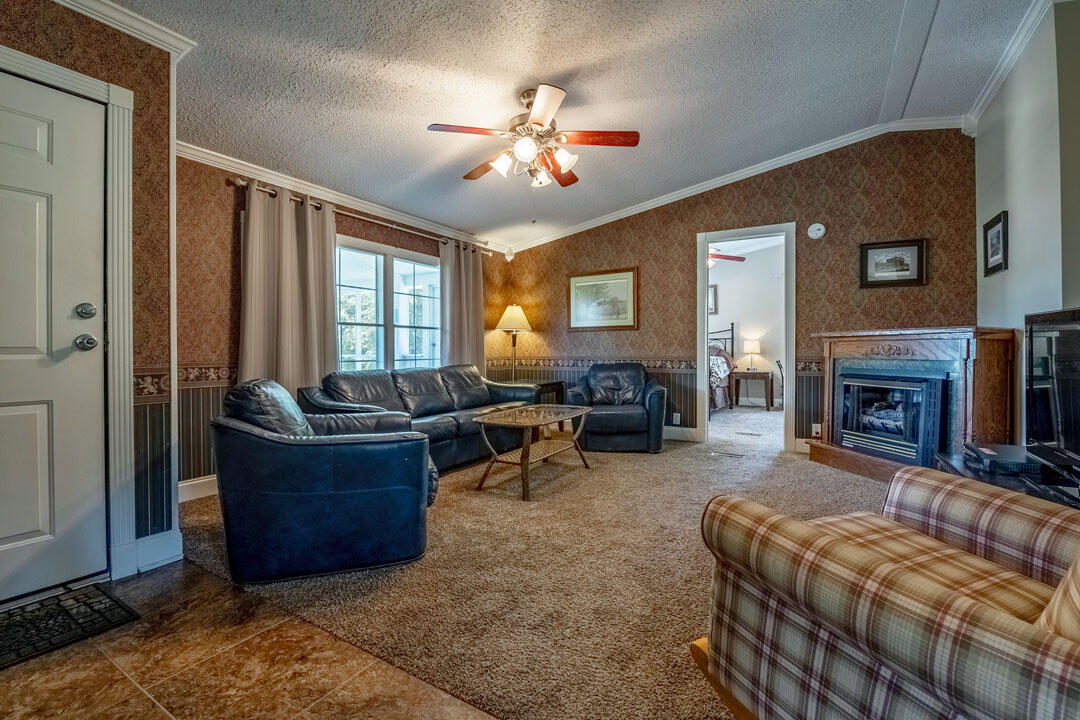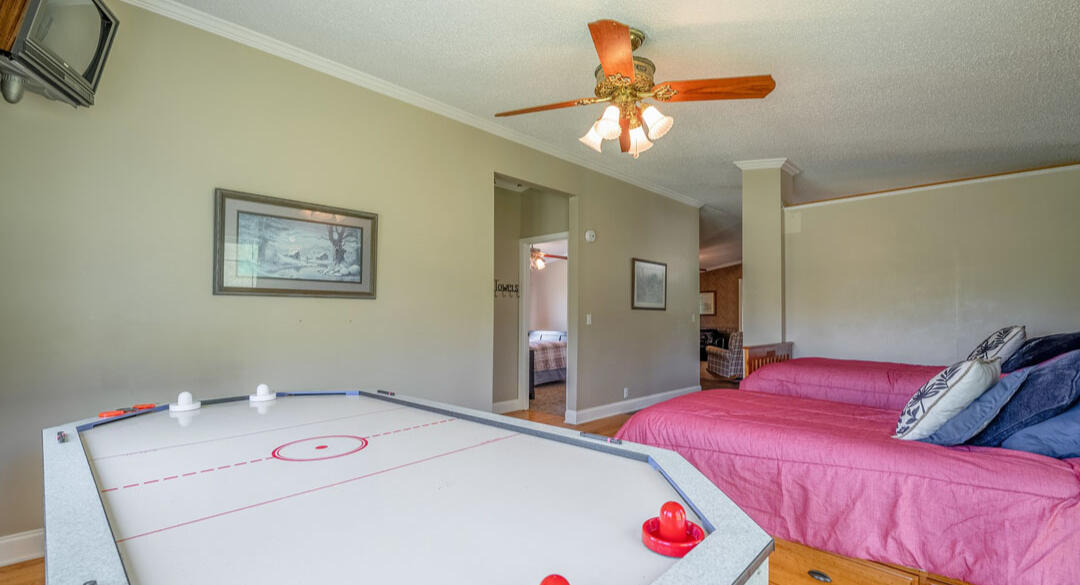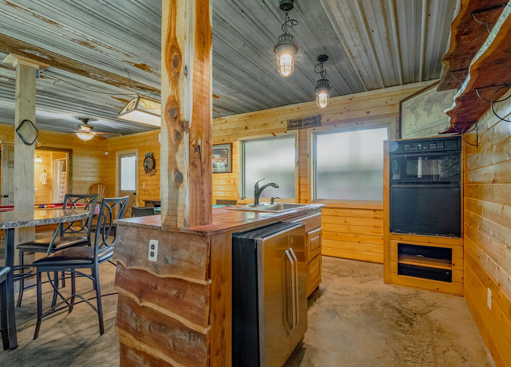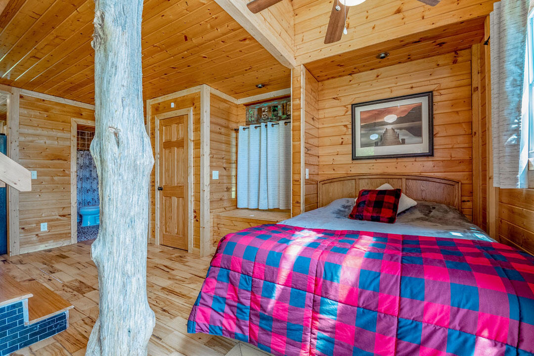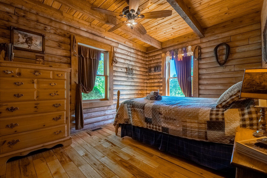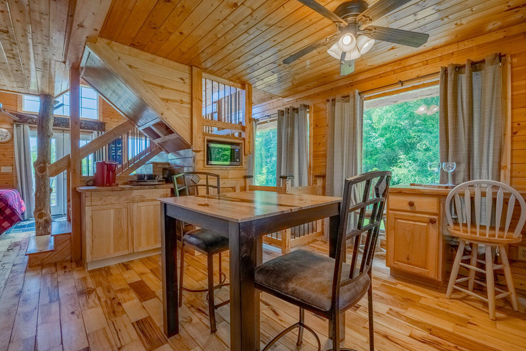 A cozy retreat situated 500 feet from the main lodge with its own driveway access. Includes 2.5 bathrooms, sleeping accommodations for 4 people, and a non-kid game room.