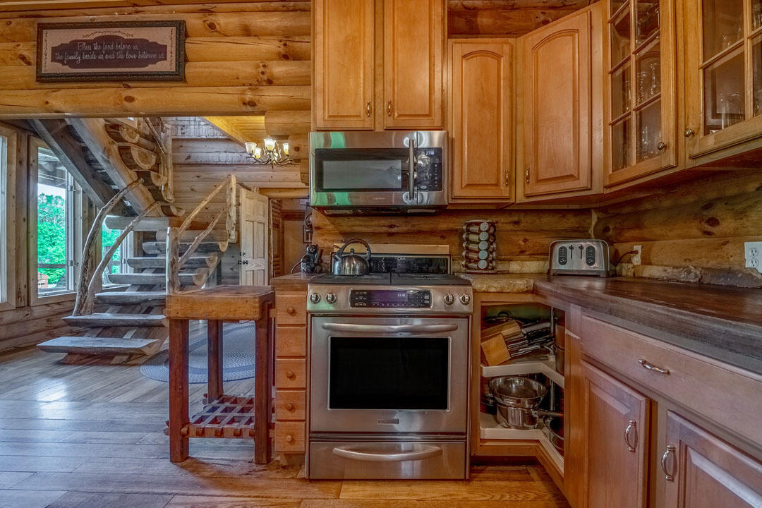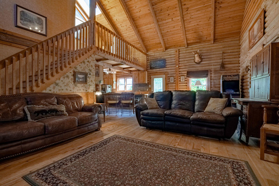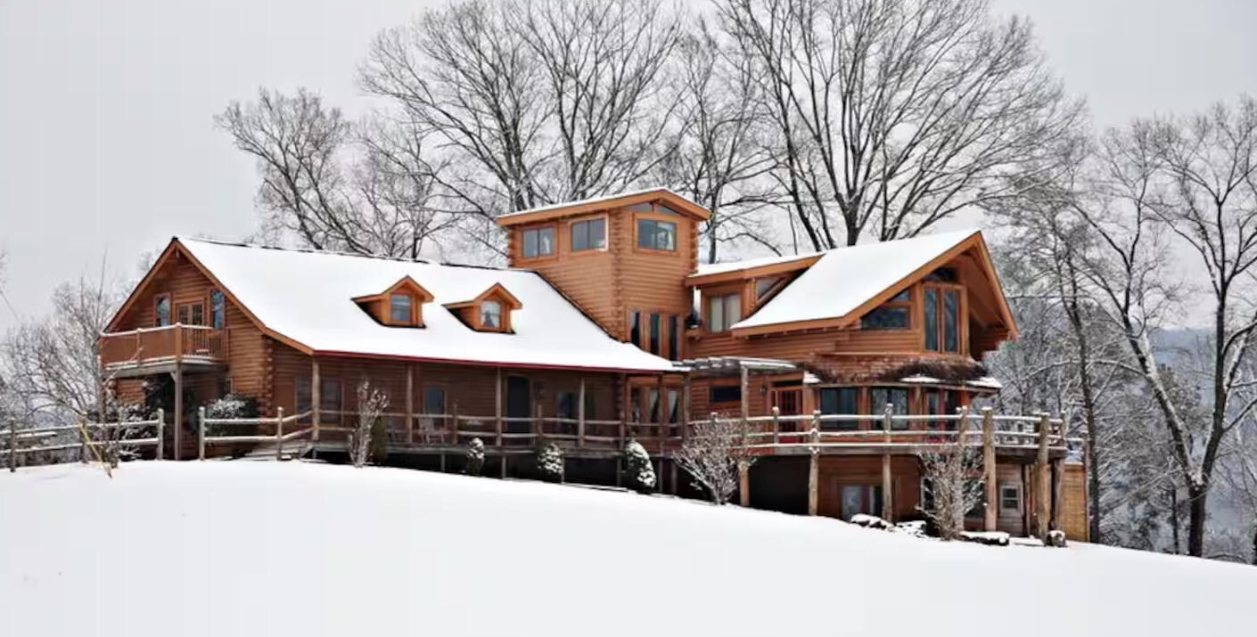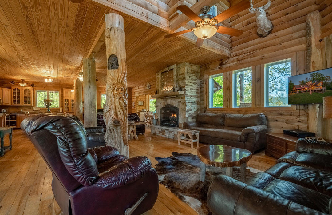 Come stay in an authentic 6,000 sq/ft log lodge in the heart of Mclemore's Cove. With 2 kitchens, 2 great rooms, 7 bedrooms and 4.5 baths the lodge has plenty of room. The Auxillary and Carriage houses are available for larger groups. If you enjoy privacy, gorgeous views, and a clean and comfortable log cabin you will love it! Call Jon today!