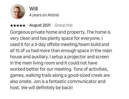 A cozy retreat situated 500 feet from the main lodge with its own driveway access. Includes 2.5 bathrooms, sleeping accommodations for 4 people, and a non-kid game room.